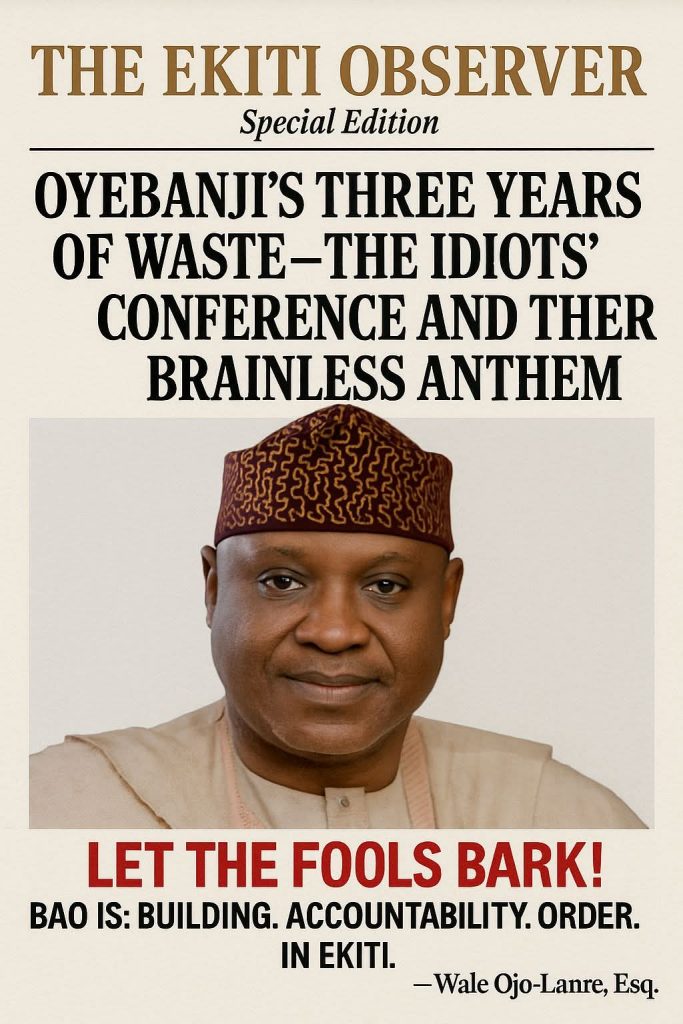 Let the fools bark, as fools must. Let the noise merchants and idle critics continue their chorus of ignorance. But when the pages of Ekiti’s history are opened, their words will be written in footnotes of shame, while Oyebanji’s chapter will be titled “The Renaissance of Sense.”