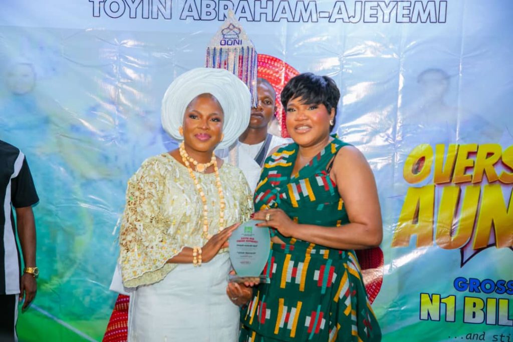 The National Film and Video Censors Board (NFVCB) has honoured leading Nollywood actress, producer, and director, Toyin Abraham-Ajeyemi with the prestigious Box Office Champion Award, in recognition of her outstanding cinematic achievement and record-breaking performance of her film, Oversabi Aunty, at the Nigerian box office.
