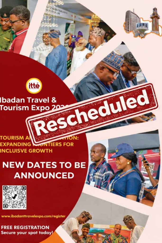 The organisers of the Ibadan Travel & Tourism Expo (ITTE) 2026 hereby announce the rescheduling of the upcoming edition of the Expo, originally scheduled to hold in April 2026 at the International Conference Centre, University of Ibadan.