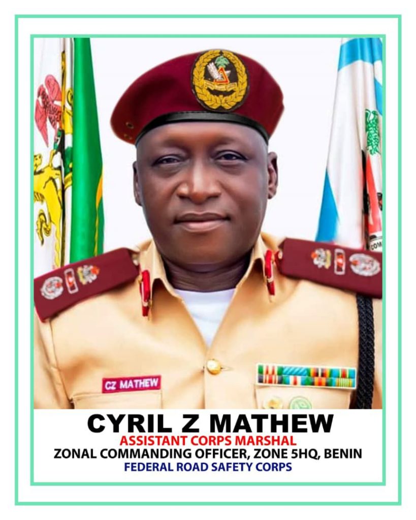 ACM Cyril Mathew, has assumed duty as the 34th Zonal Commanding Officer (ZCO) of the zone 5 headquarters, Benin, of the Federal Road Safety Corps (FRSC).